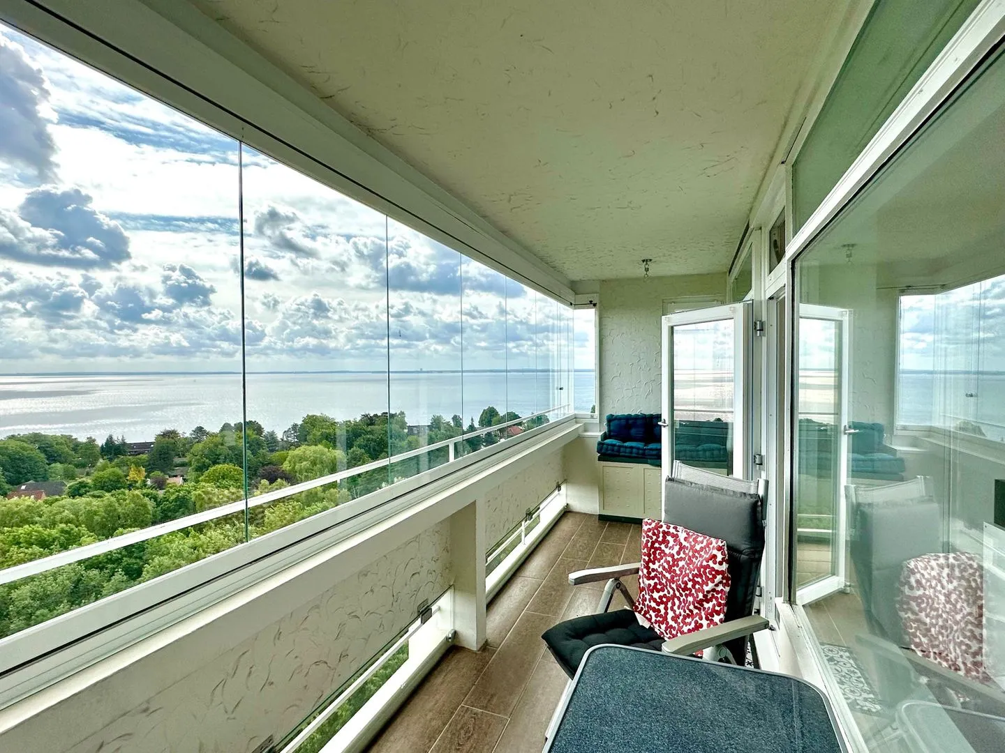 Von Ihrem verglasten, überdachten Balkon haben Sie einen traumhaften direkten Blick über die Lübecker Bucht.