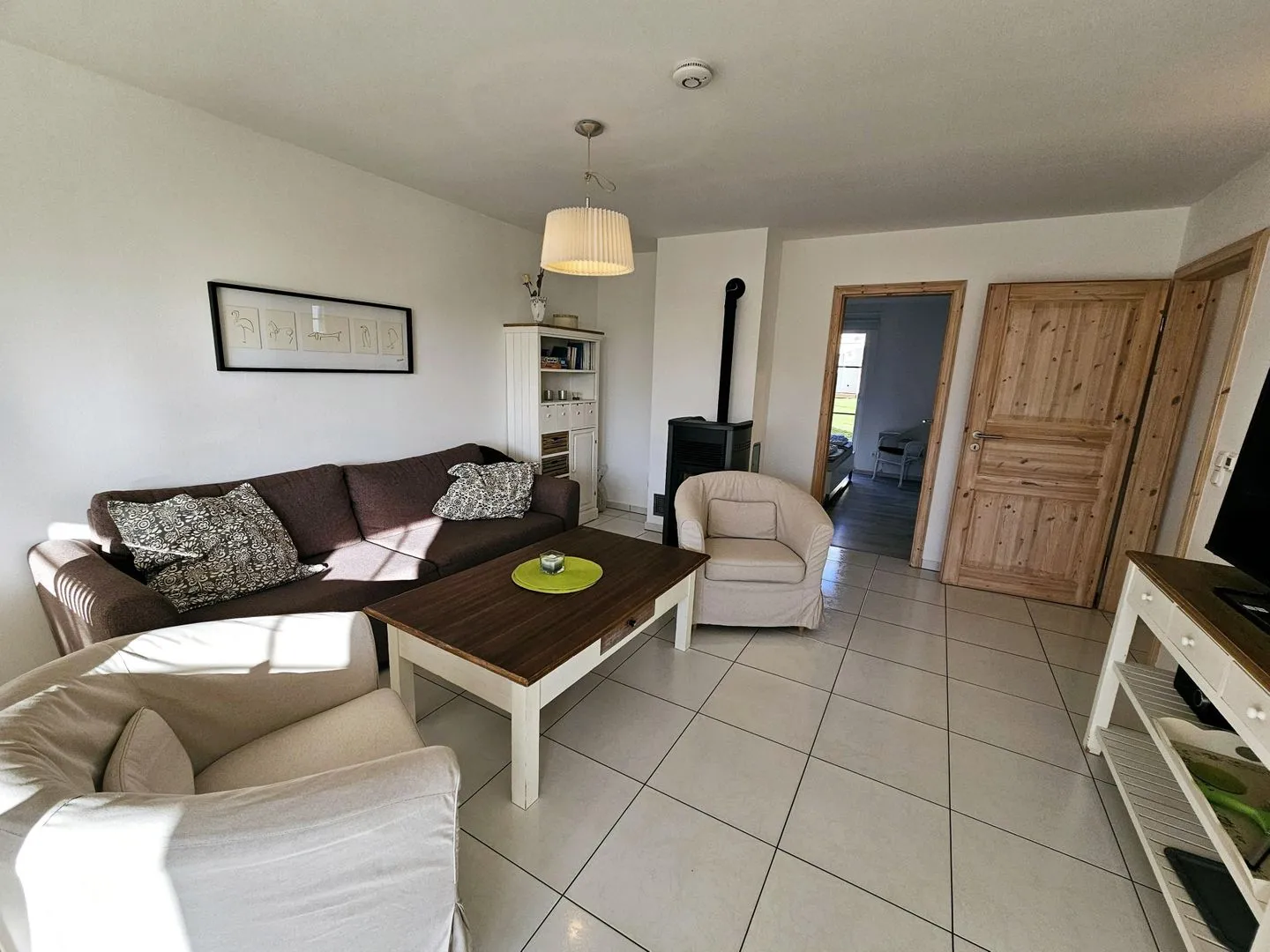 Auf 70 qm stehen Ihnen ein geräumiges Wohn-/Esszimmer mit Holzpelletofen und einer zum Wohnraum offenen Küche, 2 Schlafräume und ein Bad mit Sauna zur Verfügung.