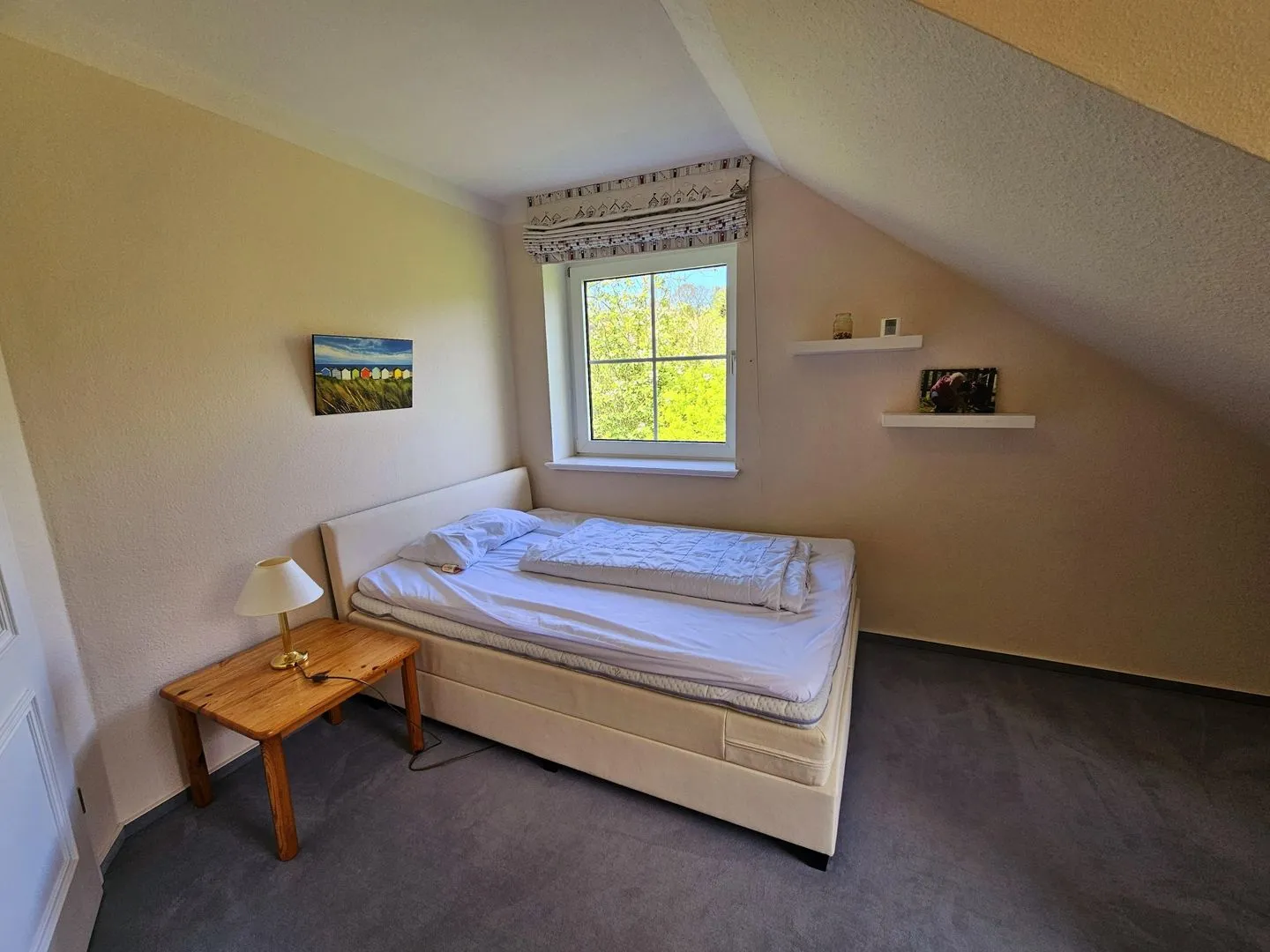 Das dritte Schlafzimmer verfügt über ein Bett in der Größe 2,00 m x 1,40 m.