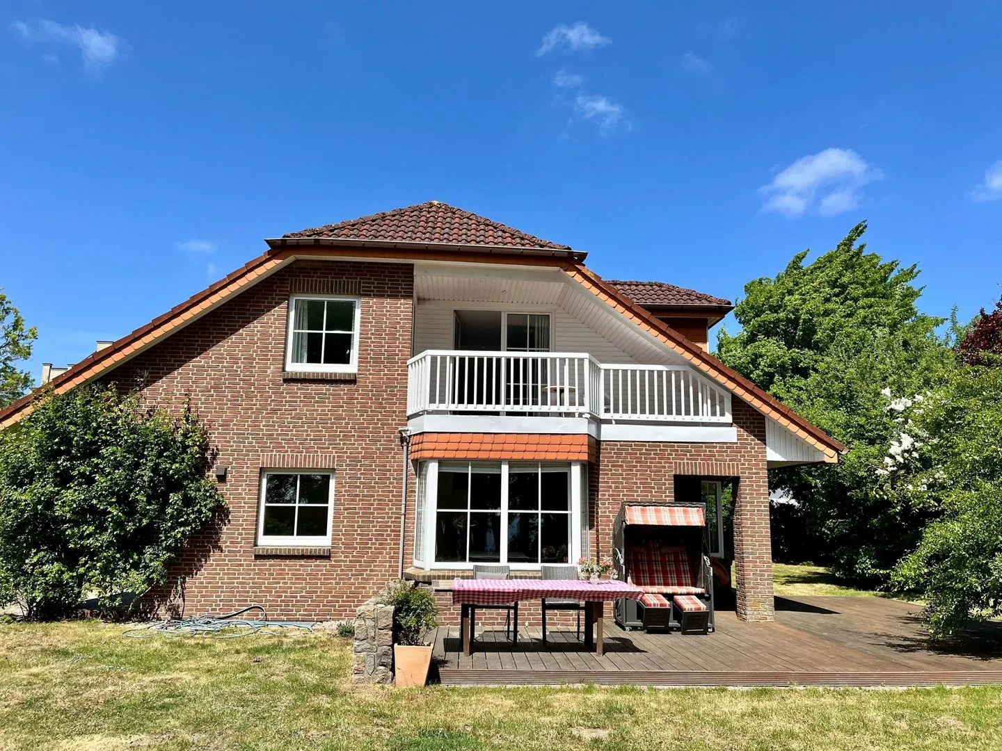 Vom Wohnraum gelangen Sie auf die Terrasse, welche mit Gartenstühlen möbliert ist und in den Sommermonaten mit einem Strandkorb.