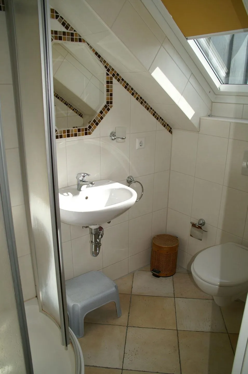 Die Wohnung hat ein modernes Duschbad mit Fenster.