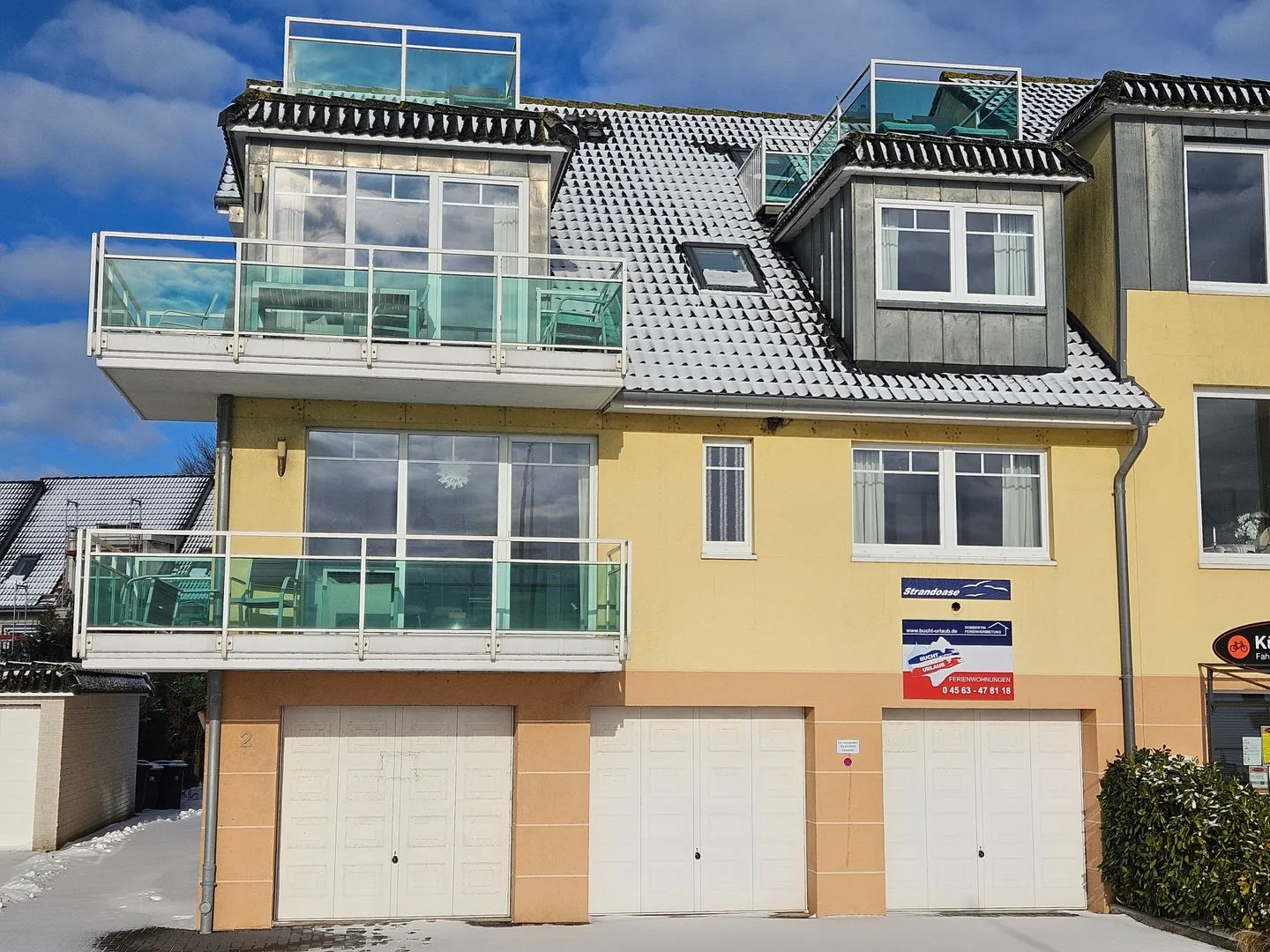 Die Ferienwohnanlage "Strandoase" mit ihren 4 Wohnungen "Meeresbrise", "Sonnendeck", "Strandmuschel" und "Sonnenbucht" bietet aus allen Ferienwohnungen einen traumhaften Meerblick. Alle Wohnungen haben entweder einen Balkon bzw. zusätzlich eine Dachterrasse.